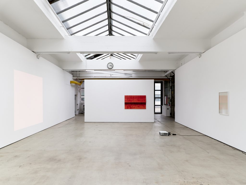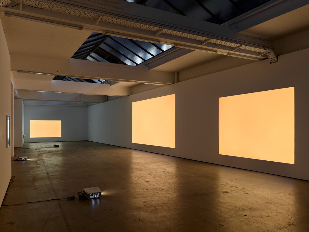 Johanna von Monkiewitsch’s exhibition A Long Moment engages with the light phenomena of the gallery space, where video projections of light and color enter into dialogue with the constantly changing natural light in the room. In this installative presentation—where light itself becomes a performative element—she explores questions of reality, time, fragility, and transience through a multimedia approach that includes video, sculpture, installation, photography, and works on paper and canvas.